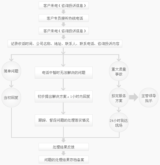 公司要求服務人員時刻為客戶著想,主動與客戶保持長期聯系,掌握產品使用情況,及時趕赴故障現場,切實、快速、有效解決問題。