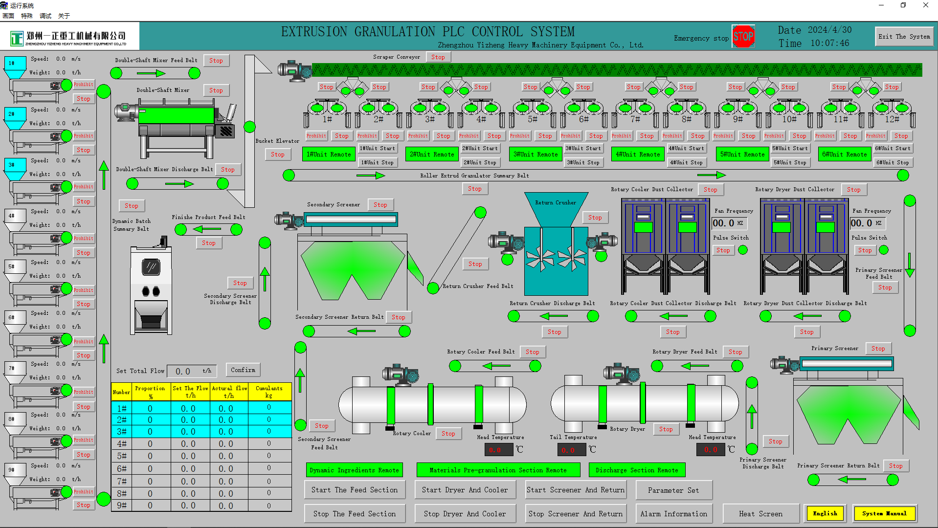鄭州一正重工機械有限公司的肥料設備控制面板一般采用智能化與人性化設計,確保整條生產線在高效、穩定與安全的條件下運行。