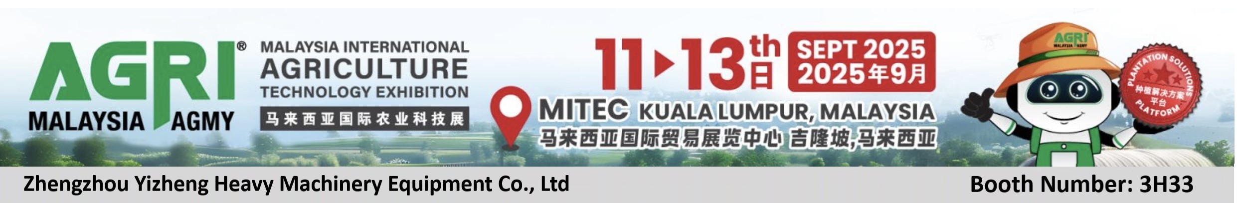 2025年9月11日至13日,鄭州一正重工機械有限公司將盛大亮相于馬來西亞吉隆坡MALAYSIA INTERNATIONAL TRADE AND EXHIBITION CENTRE(MITEC,馬來西亞國際貿易展覽中心)舉辦的國際農業科技展覽會。展會地址位于Kompleks MITEC, No 8, Jalan Dutamas 2, 50480 Kuala Lumpur,期間每日10點至19點對國內外農業行業專業人士和投資者開放。本次展會作為亞洲最具影響力的現代農業技術交流平臺之一,吸引了全球各大知名農業設備生產商與技術服務商參展。