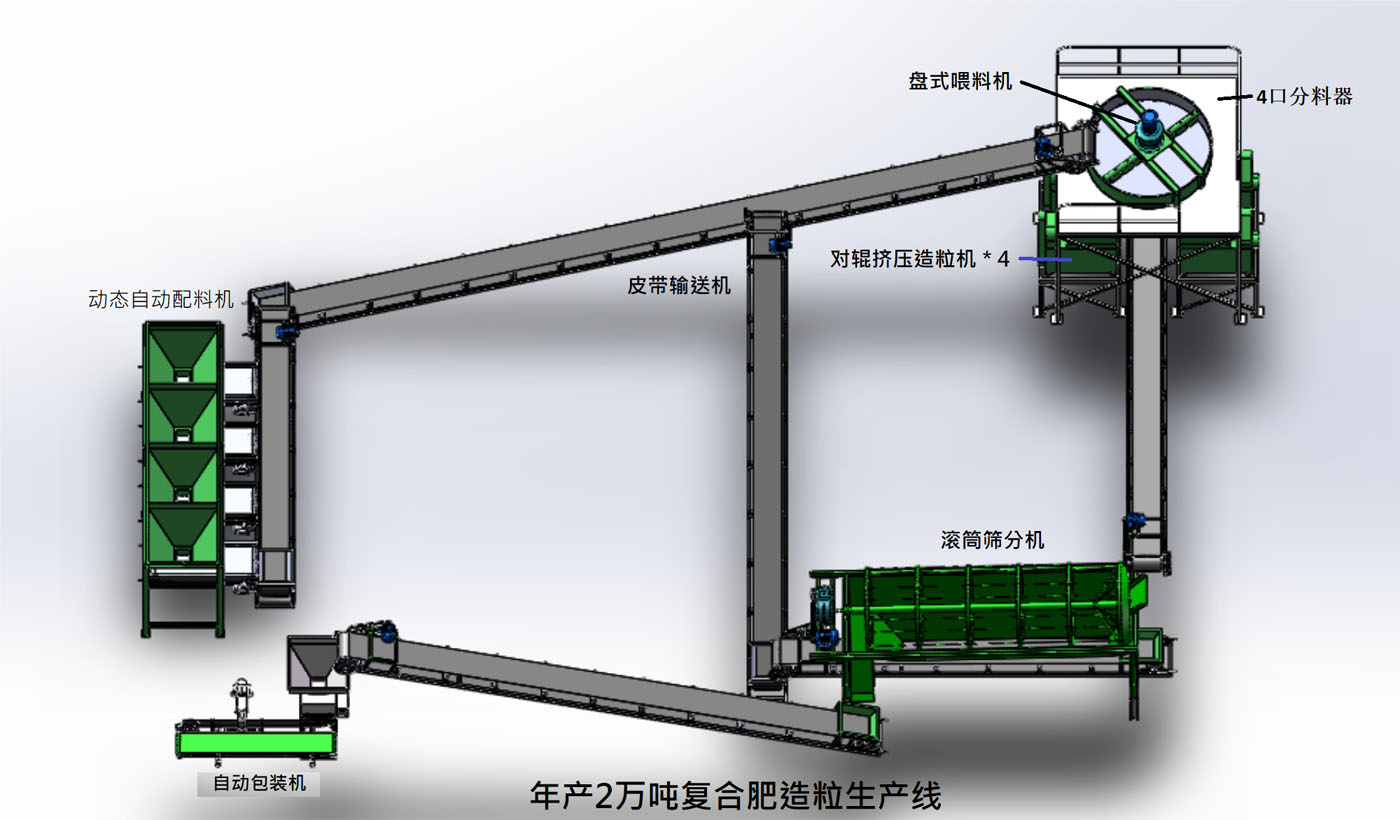 3. 該復(fù)合肥生產(chǎn)線結(jié)構(gòu)緊湊合理,占地面積小。